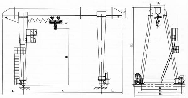 MH型電動葫蘆門式起重機與CD、MD等型號的電動葫蘆配套使用,是一種有軌運行的中小型起重機,其適用起重量3~16噸,適用跨度為12~30米,工作環境-20攝氏度~+40攝氏度內。本產品為一般用途起重機,多用于露天場所及倉庫的裝卸或抓取物料。本產品有地面操縱和室內操縱兩種形式。